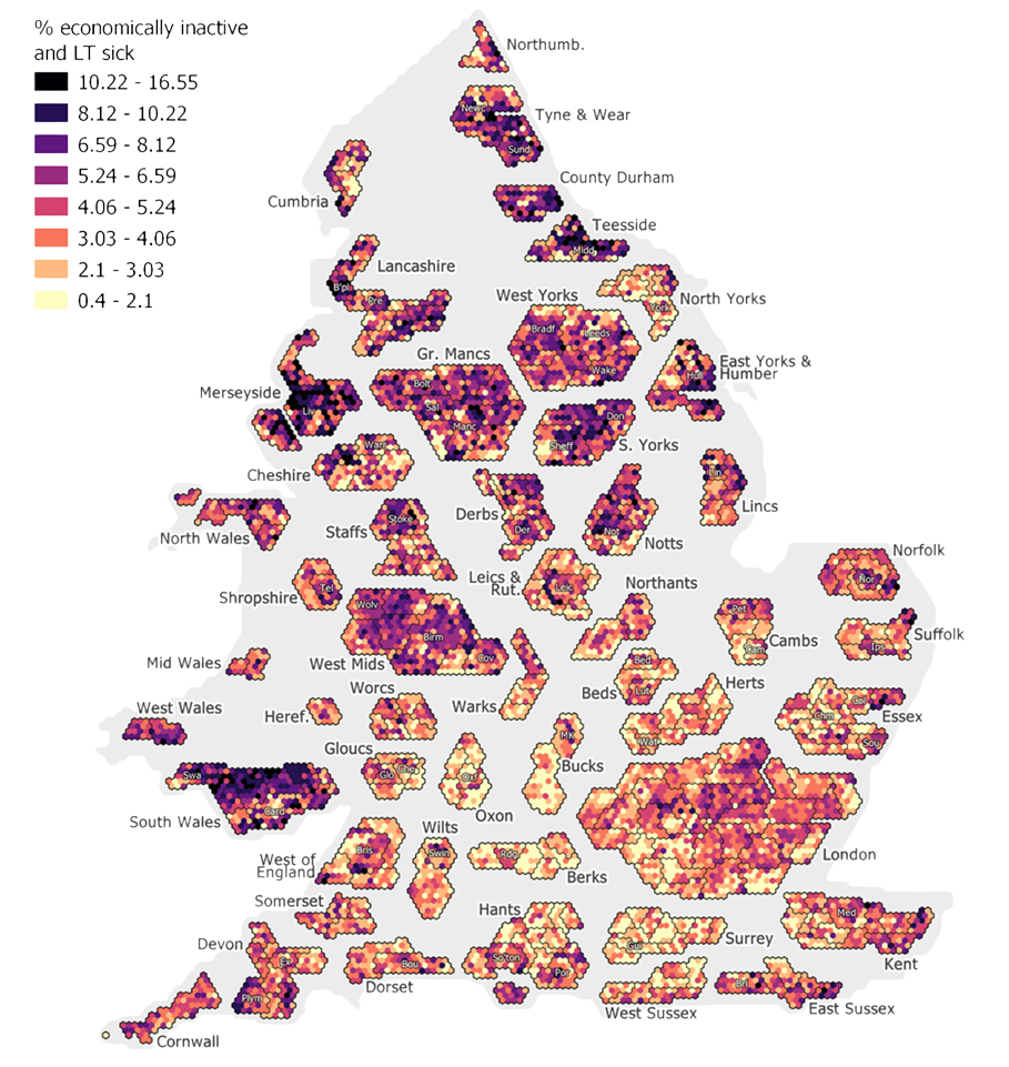 5. Fourteen times as many people are economically inactive due to long-term sickness in some parts of the country compared to others