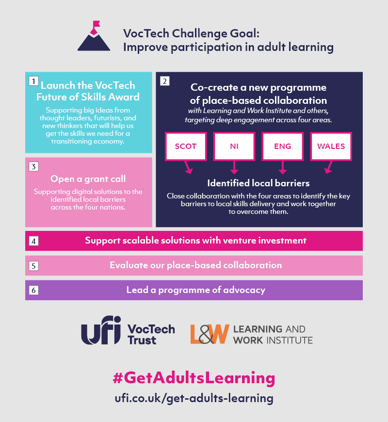 Ufi and L&W are excited about the progress made so far in creating a ‘movement’ of stakeholders dedicated to get adults learning. We will continue to use what we learn from the programme to advocate for change and accelerate the adoption of solutions the UK economy needs to get the skills required for a transitioning economy.
